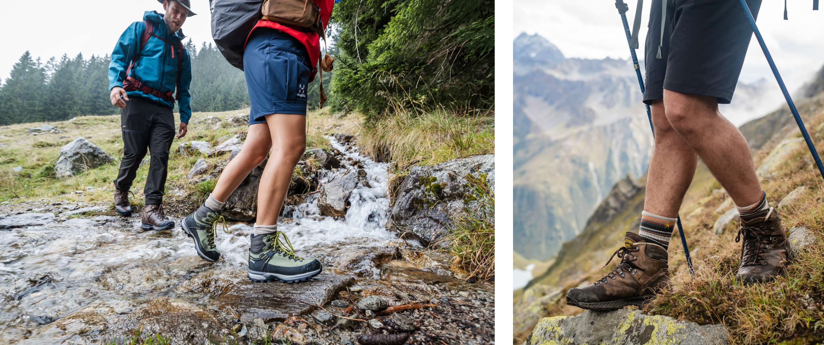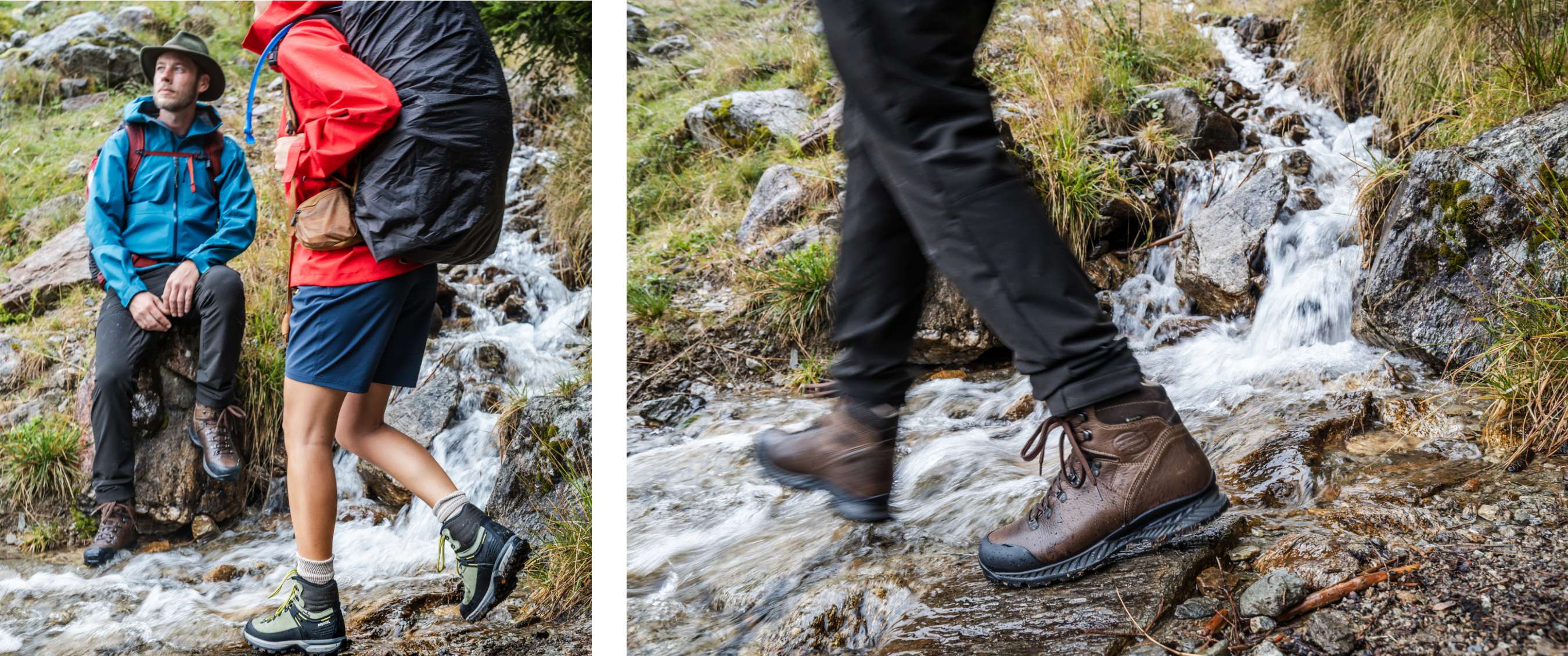 Het weer in de bergen is wisselvallig. Zon, regen en zelfs sneeuw passeren om beurt de revue. Regelmatig stappen ze door een ondiep bergriviertje, maar de Gore-Tex-voering houdt Robins voeten de hele tocht perfect droog. Lore merkt bij aankomst in de berghut dat haar schoenen toch wat vochtig aanvoelen. “Hoe comfortabel ze ook zitten, het blijft zalig om na een stevige hike je wandelschoenen uit te trekken en de pantoffels aan te schuiven,” vertelt ze. ’s Nachts drogen haar schoenen, zodat ze de volgende ochtend weer klaar zijn voor gebruik. Overdag zorgt de Air Revolution-technologie - een intern ventilatiesysteem - ervoor dat haar voeten op temperatuur blijven: “Warm genoeg bij koud weer, en koel genoeg bij warme inspanningen.”