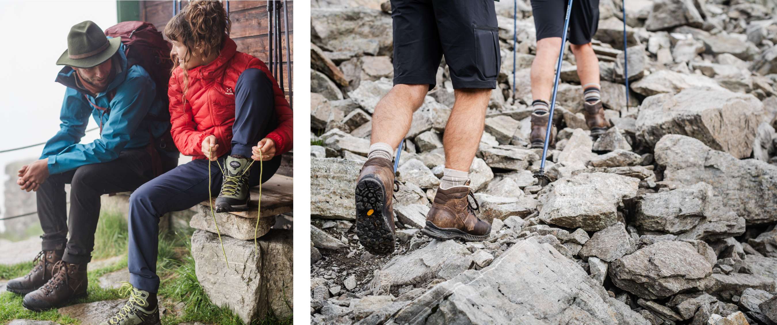Ze klauteren over steile paden omhoog, richting een bergkam. Vinnig en vol vertrouwen stappen ze van rotsblok naar rotsblok. Het heeft geregend, de stenen zijn nog vochtig, maar dat deert hen niet. “De grip van de Vibram-zolen is verrassend stevig. Dat biedt zoveel stabiliteit en zekerheid”, vertelt Robin. “Ik ben geen enkele keer weggegleden.” Ook van omgeslagen voeten of valpartijen is geen sprake. Lore vult aan: “De schoenen voelen stevig en veilig. Zelfs bij losliggende stenen ben ik nooit bang geweest dat mijn tenen gevaar liepen.”En over stenen gesproken: “Op geen enkel moment zijn er steentjes in de zool blijven steken”, merkt Robin op. “Gelukkig, want niets vervelender dan steentjes uit je zolen te moeten peuteren.”